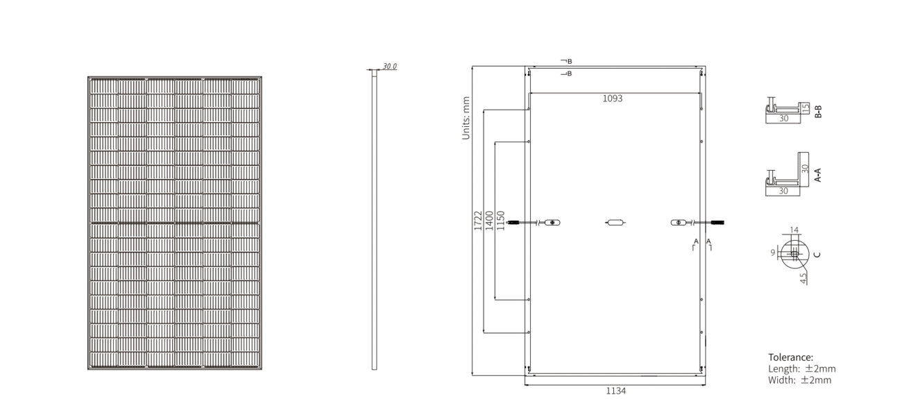 STC: опромінення 1000 Вт/м², температура камери 25 °C, повітряна маса AM1.5 NMOT: опромінення 800 Вт/м², температура навколишнього середовища 20 °C, повітряна маса AM1.5, швидкість вітру 1 м/с